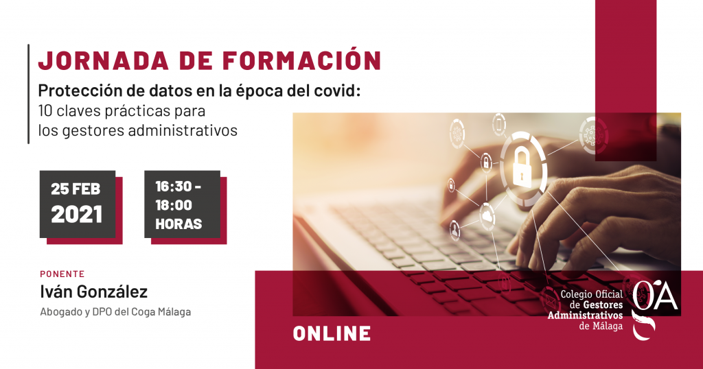 El experto Iván Gonzalez nos explicará el próximo 25 de marzo las 10 claves prácticas para proteger los datos en la época del Covid. En el Colegio queremos que nuestros colegiados estén formados lo mejor posible y por eso ponemos a vuestras disposición jornadas de formación relacionadas con temáticas de máxima actualidad. Si quieres inscribirte, […]