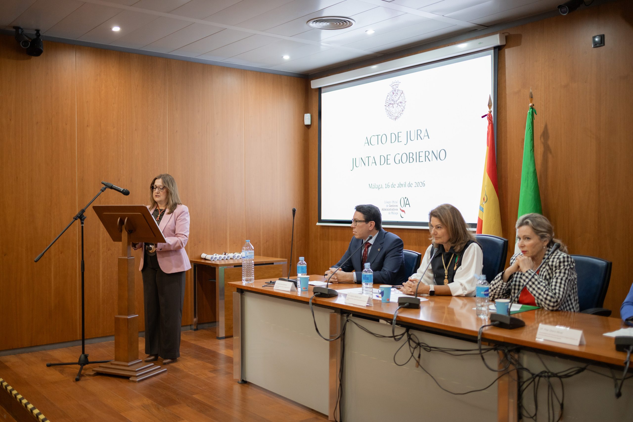 La nueva presidenta del Colegio de Gestores Administrativos de Málaga, Virginia Martín, ha jurado su cargo en un acto institucional celebrado en la Ciudad de la Justicia de Málaga, acompañada por autoridades, representantes institucionales y miembros de la nueva Junta de Gobierno, del Consejo Andaluz y del Consejo Nacional.