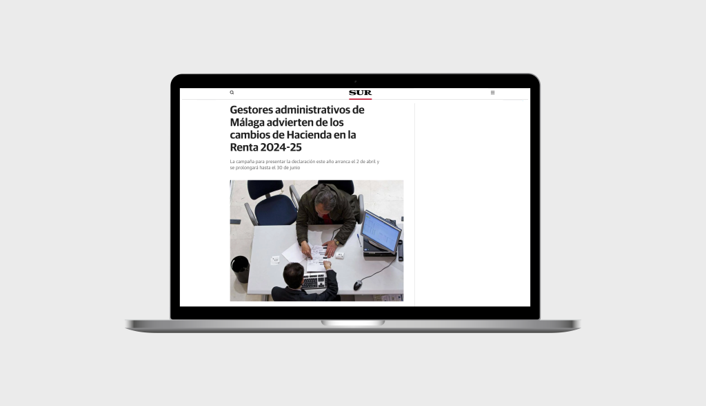 Diario Sur se hace eco de la nota de prensa que lanza el Colegio días antes de que arranque la Renta 2024.