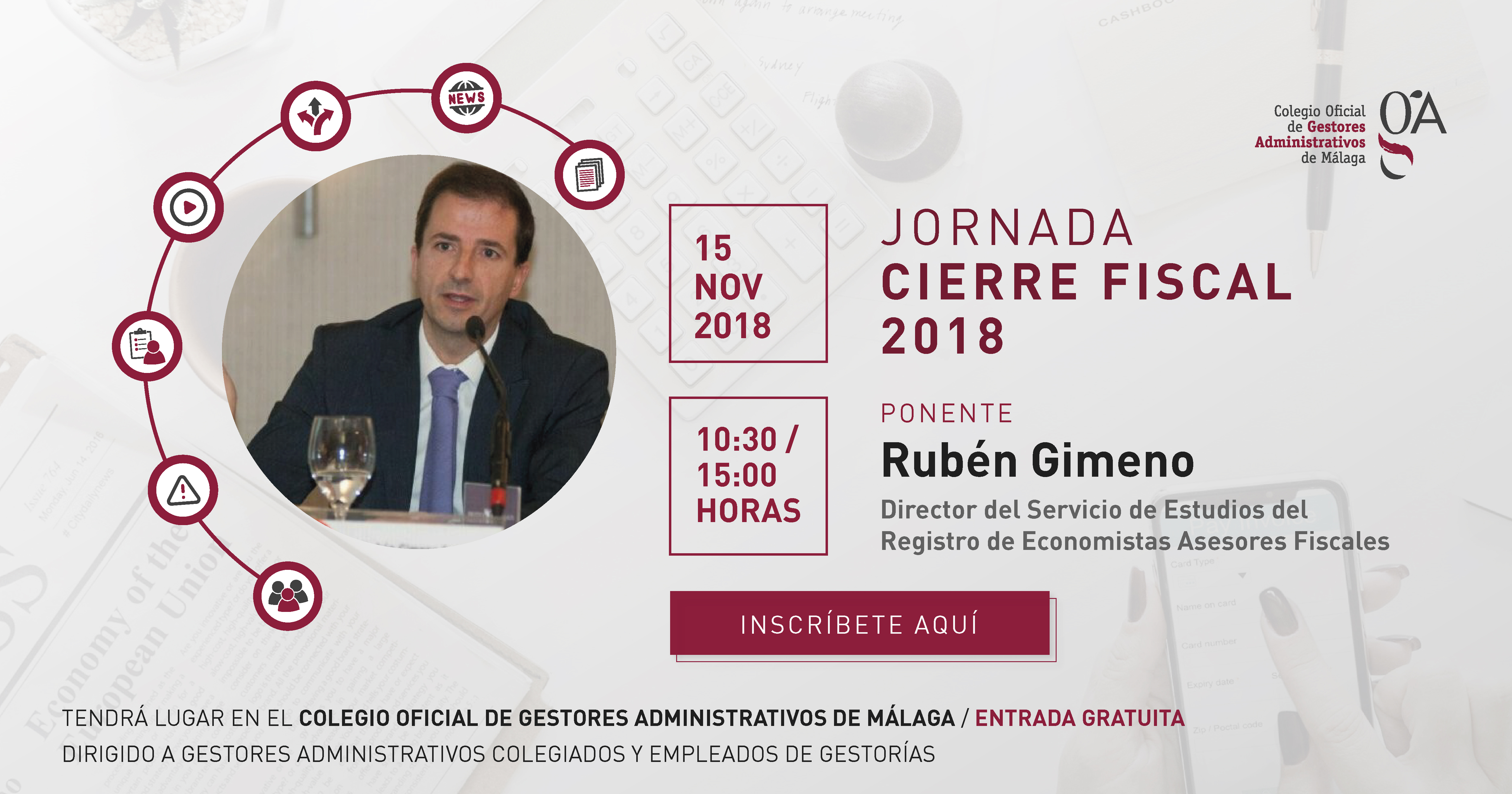 Rubén Gimeno impartirá una jornada informativa sobre Cierre Fiscal 2018